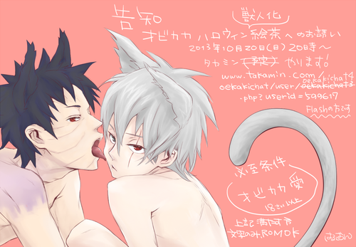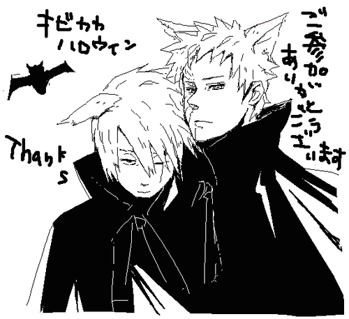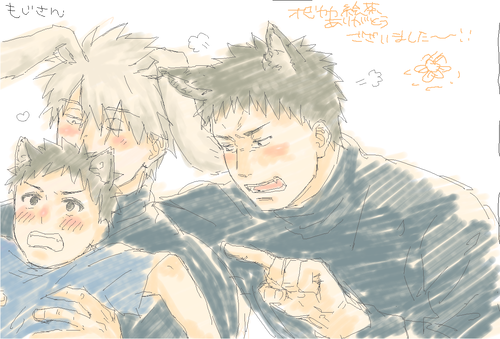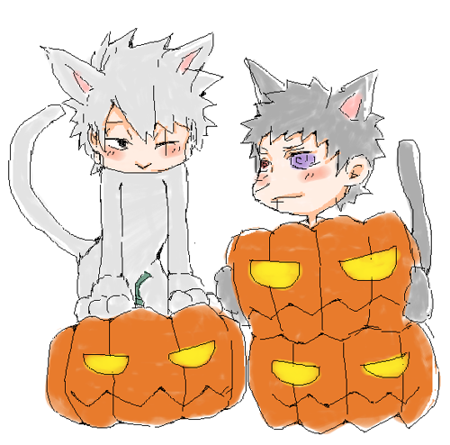 合間にハロウィン妄想した委員長カカシ。オビトさんに買ってもらったお耳と尻尾をつけてる妄想置いていきますね。