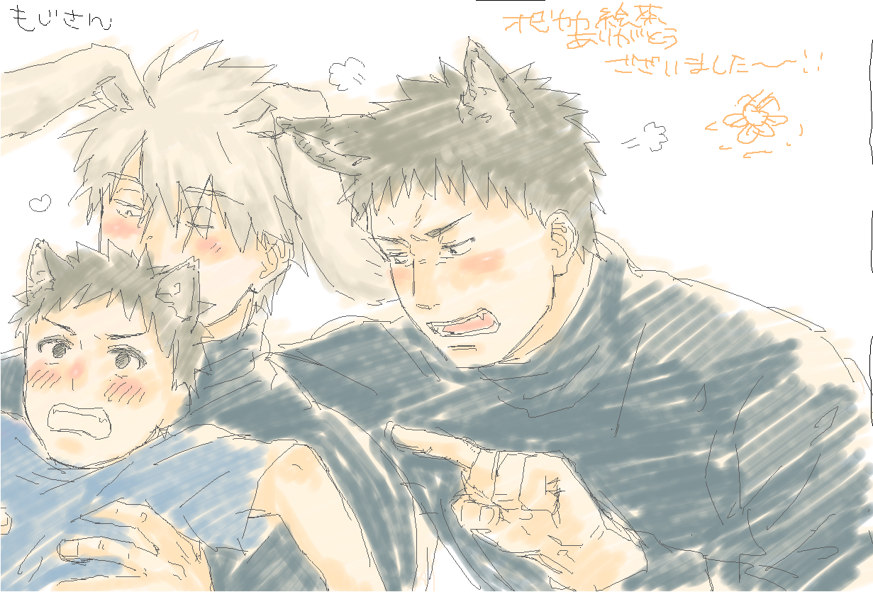 オビトさん何囁いてるのかな…。wktk!ちょっと嫌がってる風なのに尻尾が絡んでますよ…カカ!!むりくりペンタブ引っ張りださせてしまって…ありがとうございました!!私の引いた汚い線が斜めってるばかりに画面に入ってしまいました…申し訳ないです><(六花さま)