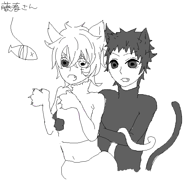 オビトさん何囁いてるのかな…。wktk!ちょっと嫌がってる風なのに尻尾が絡んでますよ…カカ!!むりくりペンタブ引っ張りださせてしまって…ありがとうございました!!私の引いた汚い線が斜めってるばかりに画面に入ってしまいました…申し訳ないです><(六花さま)